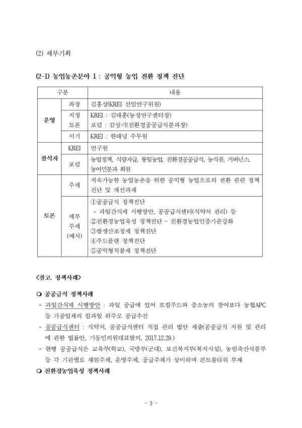 -「KREI-KMI-(사)농어업정책포럼」공동 워크숍 및 포럼 정기총회 기획(안) -
